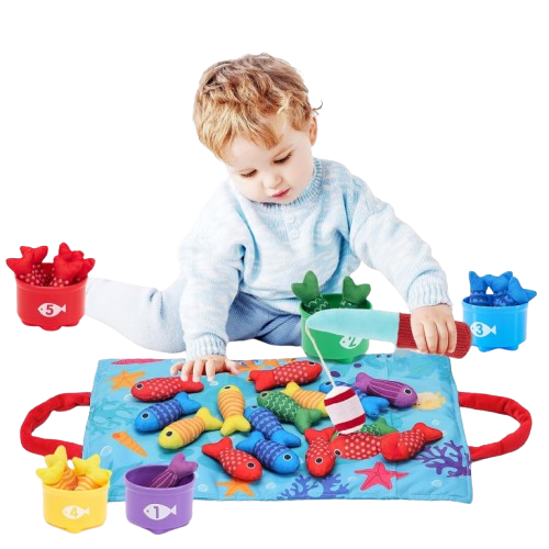 Bezpieczne i miękkie materiały: Wszystkie elementy, w tym rybki i wędka, wykonane są z miękkiego materiału, bezpiecznego dla najmłodszych.