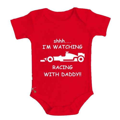 Body niemowlęce z nadrukiem „I’m watching racing with Daddy” – rozmiary od 3 do 18 miesięcy