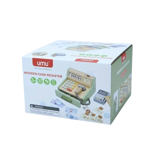 Drewniana kasa fiskalna UMU – sklepowa przygoda dla Twojego dziecka! Rozwój poprzez zabawę. Bezpieczne, ekologiczne materiały. Idealny prezent edukacyjny!