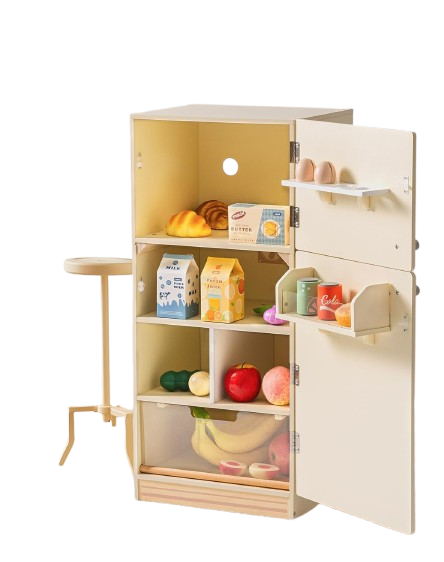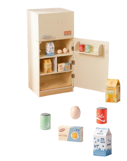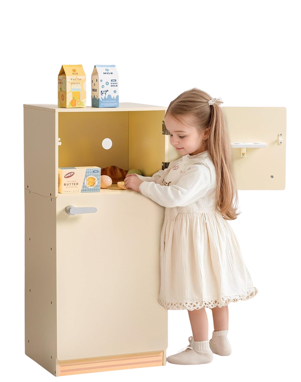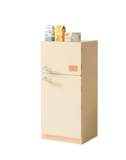 Drewniana lodówka do zabawy – stylowa kuchnia dla małego szefa!