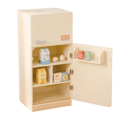 Wyjątkowa drewniana lodówka to idealny dodatek do dziecięcej kuchni. Realistyczny wygląd, solidne wykonanie i mnóstwo miejsca na ulubione zabawki spożywcze! Stworzona z myślą o bezpiecznej i kreatywnej zabawie już od 3. roku życia.