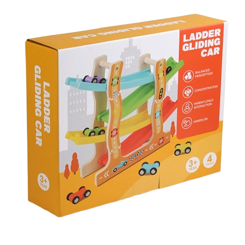 Cztery poziomy zjazdu: Samochodziki śmigają po kolorowych rampach, zapewniając dynamiczną rozrywkę.