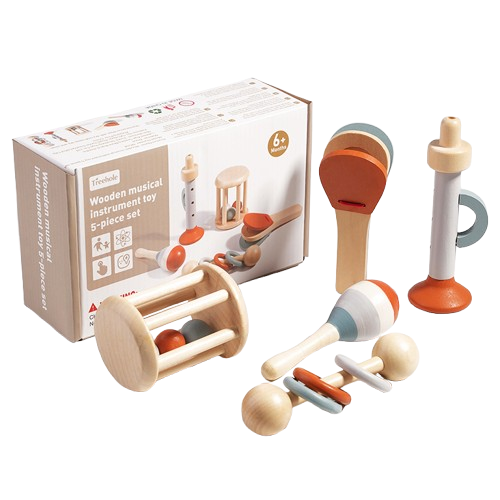 Zestaw 5 drewnianych instrumentów muzycznych to idealny sposób na pierwsze muzyczne odkrycia Twojego dziecka! Bezpieczne, kolorowe i zaprojektowane z myślą o małych rączkach, rozbudzą kreatywność i pasję do muzyki już od 6. miesiąca życia.