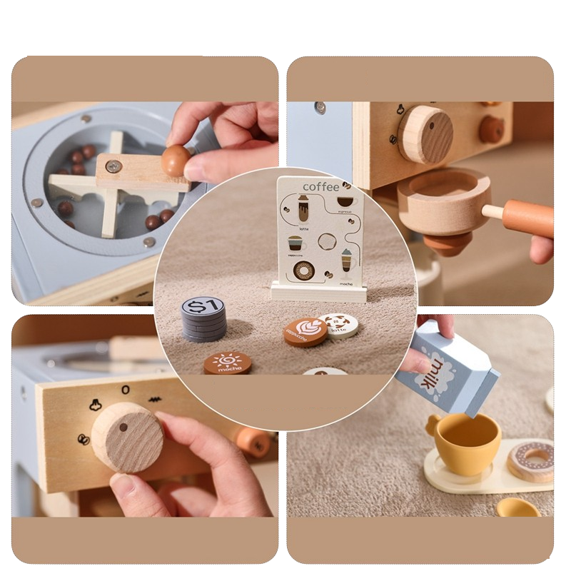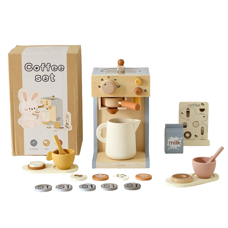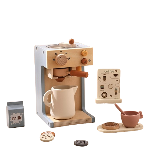 Drewniany zestaw ekspres do kawy – kawiarnia w dziecięcym stylu!