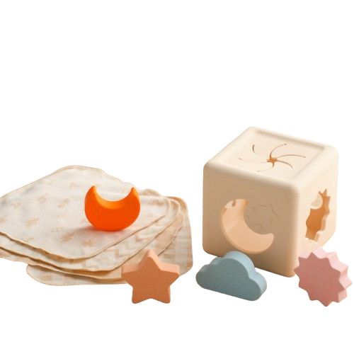 Odkryj nowoczesną, edukacyjną kostkę sensoryczną dla najmłodszych! Łączy w sobie zabawę w dopasowywanie kształtów, rozwój zmysłu dotyku i koloru oraz funkcję praktycznego pojemnika na chusteczki lub ściereczki.