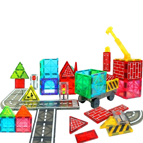 Odkryj kreatywny zestaw magnetycznych klocków konstrukcyjnych, który zachwyci każdego małego inżyniera. Zestaw Plac Budowy zawiera aż 38 różnych elementów do budowania pojazdów, budynków, dróg i znaków drogowych, co gwarantuje godziny fascynującej zabawy i nauki przez działanie.