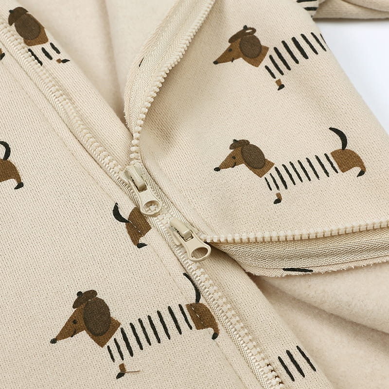 Praktyczny i uroczy kombinezon dla noworodków i niemowląt, wykonany z miękkiego polaru. Idealny na chłodniejsze dni – zapewnia ciepło, komfort i pełną swobodę ruchów. Dzięki wygodnemu suwakowi łatwo go zakładać i zdejmować, a kaptur dodatkowo chroni główkę dziecka przed wiatrem i zimnem. Wzór z pieskami nadaje całości uroczego charakteru.
