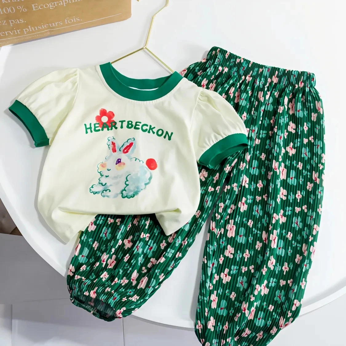 Dwuczęściowy Zestaw Ubranka Dziecięcego z Króliczkiem – Koszulka i Spodnie