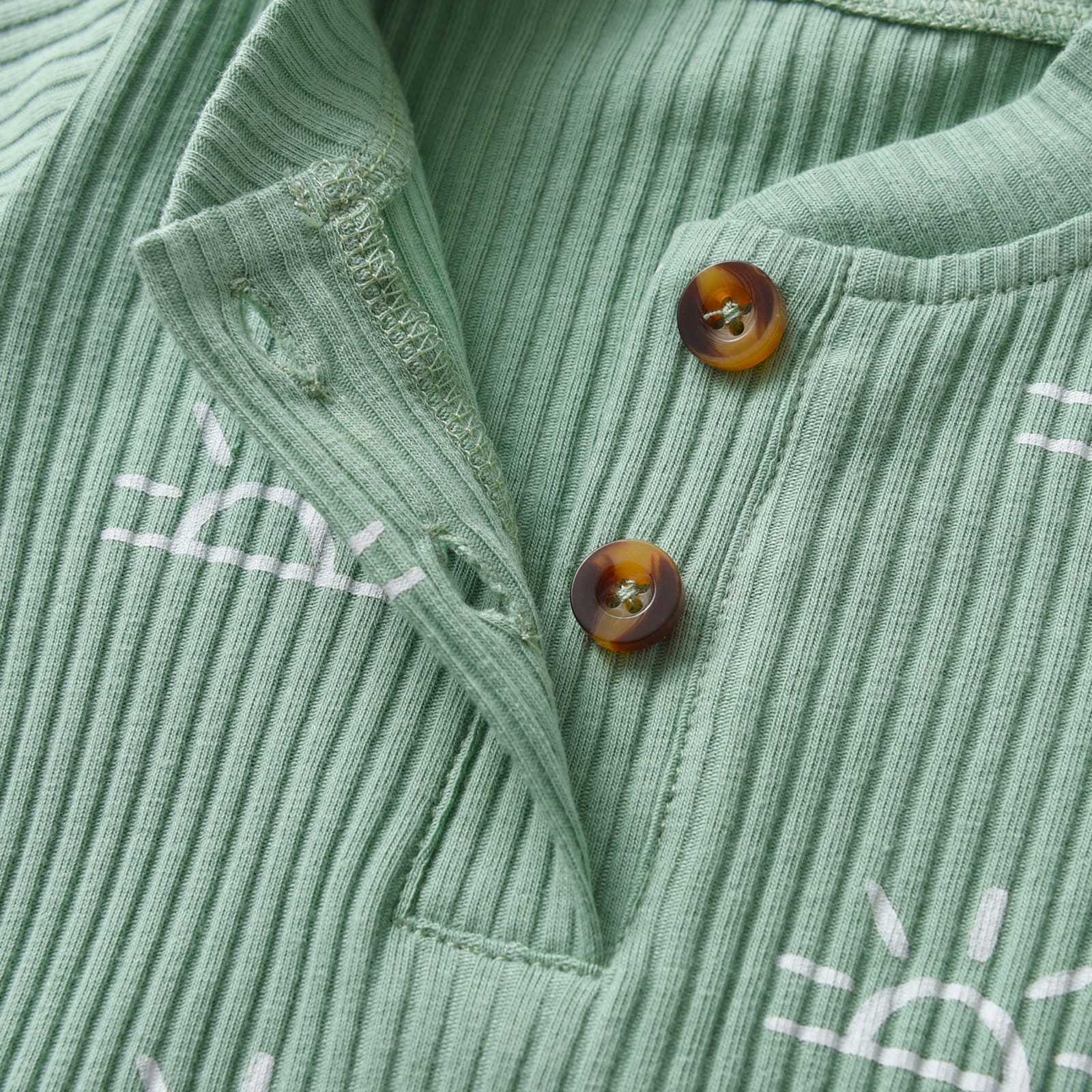 Dwuczęściowy zestaw niemowlęcy składający się z wygodnego body z krótkim rękawem i elastycznych szortów. Idealny na lato – zapewnia swobodę ruchów i komfort noszenia przez cały dzień.