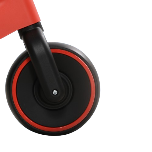 Trwałe, zamknięte opony EVA – ciche i odporne na przebicia, zapobiegają uwięzieniu stópek dziecka.