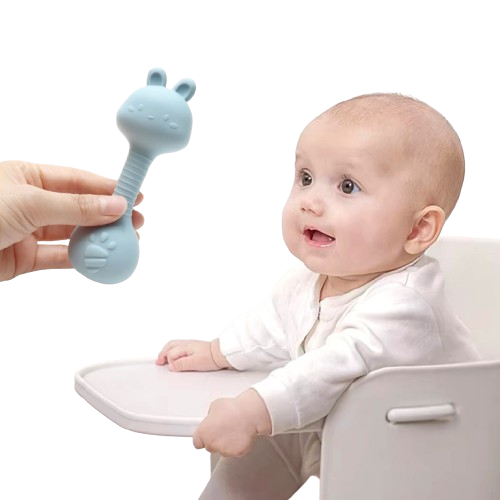 Bezpieczna grzechotka silikonowa w kształcie zwierzątka to idealna pierwsza zabawka dla niemowlaka. Elastyczna i lekka, wspiera rozwój motoryki małej, ćwiczy chwytanie i zachęca do zabawy. Bezpieczne, miękkie uszka nadają się do gryzienia podczas ząbkowania, a przyjemny dźwięk grzechotki stymuluje słuch dziecka.