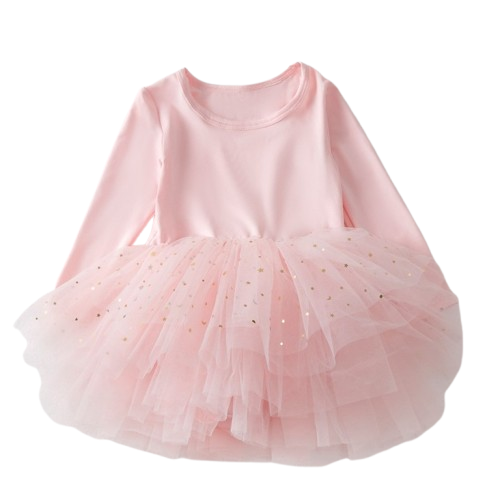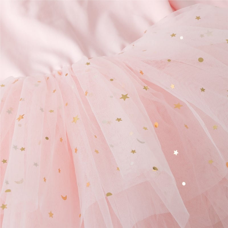 Zachwyć swoją małą księżniczkę wyjątkową sukienką tutu! Delikatny róż, lekko połyskujący tiul ozdobiony złotymi gwiazdkami i wygodny krój sprawiają, że ta sukienka to must-have w garderobie każdej dziewczynki. Idealna na urodziny, przyjęcia, bale i wyjątkowe okazje!