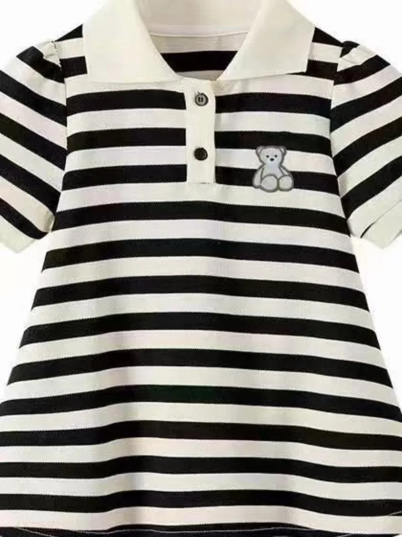Dziewczęca Koszulka Polo w Paski z Misiem – Komfort i Styl na Co Dzień!