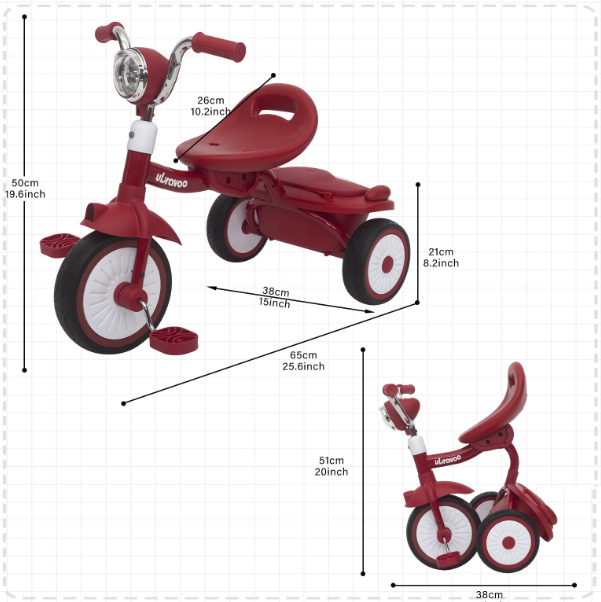 Trójkołowy rowerek Retro dla dziecka 1-5 roku życia czerwony