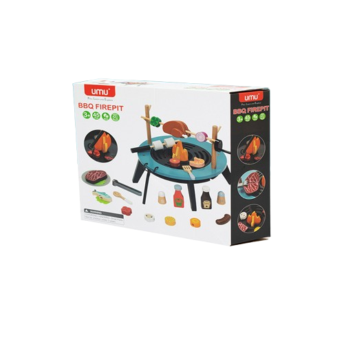 Drewniany Grill BBQ Firepit – Zestaw do Zabawy dla Dzieci